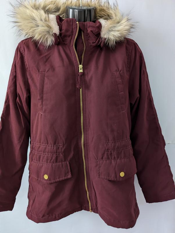 Куртка для девочки h&m,11,12,150,парка,полиэстер,теплая,вишня,бордо,капюшон,с,капишоном,ме...