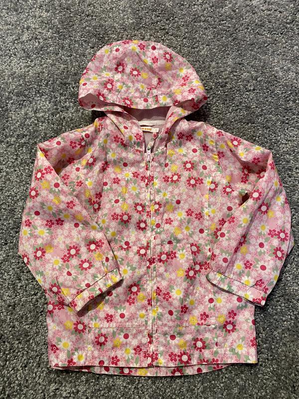 рожева дитяча куртка-вітрівка з квітковим принтом. Заміри є у фото , розмір 3-4 роки