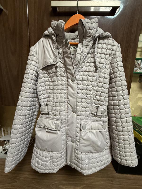 Продам підліткову куртку KIKO світло-сірого кольору. Куртка майже нова, одягалася всього пару раз, стан ідеальний — без плям, потертостей чи інших дефектів. Розмір 12, на зріст приблизно 152 см. Модель з капюшоном, застібається на блискавку та кнопки, має зручні кишені й утяжку на талії, завдяки чому гарно сидить по фігурі. Усередині легкий утеплювач (soft filler) та приємна підкладка, тому куртка підходить для осені, весни або теплої зими.
