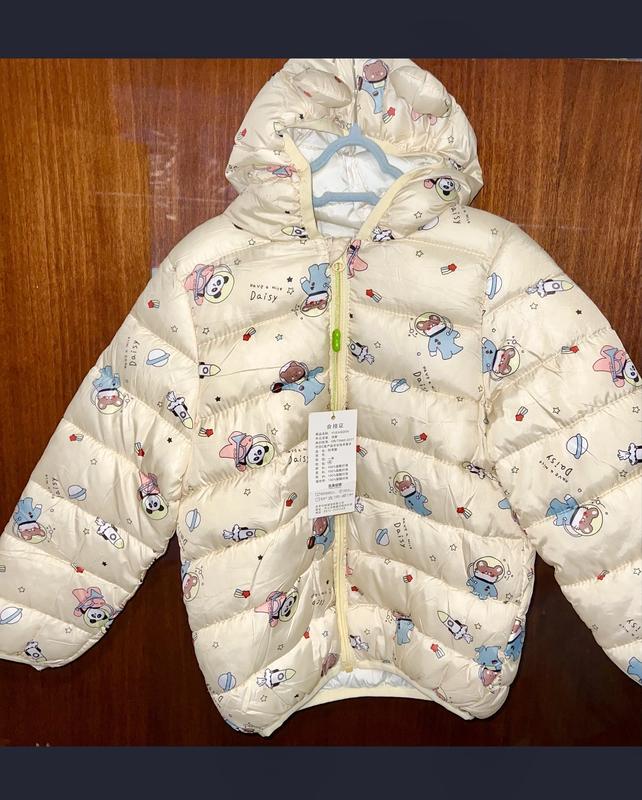 Дуже гарна НОВА курточка для дитини , жовтого кольору , з гарним малюнком який підійде як для дівчинки так і для хлопчика . Капюшон з вушками. Параметри вказані на фото, на ітекетці вказано розмір 120 , але краще дивіться параметри