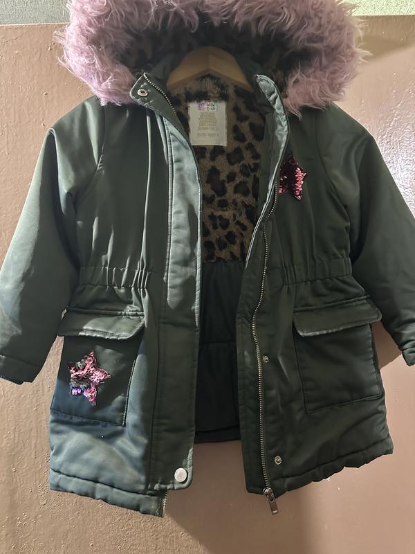 Куртка на теплу зиму, на 4/5 роки, колір хакі, внутрішній принт