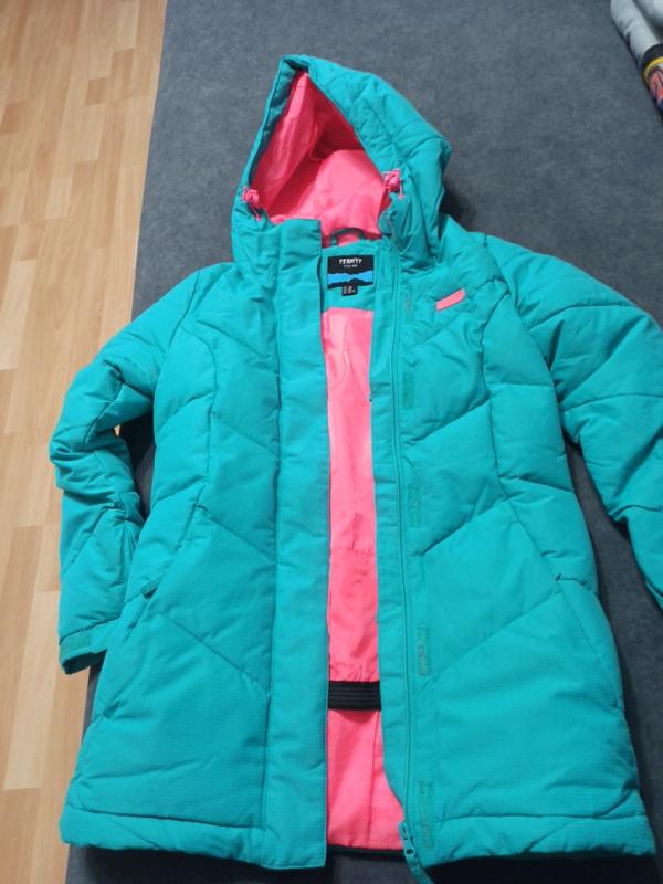 Зимняя курточка для девочки в хорошем состоянии. Теплая и удобная. Стан хорош, без дефектов, всегда была стирка со специальными средствами. На рукавах есть немного катышек. Замеры: длина по спинке 71 см, ширина 47 см, рукав по внутреннему шву 47 см