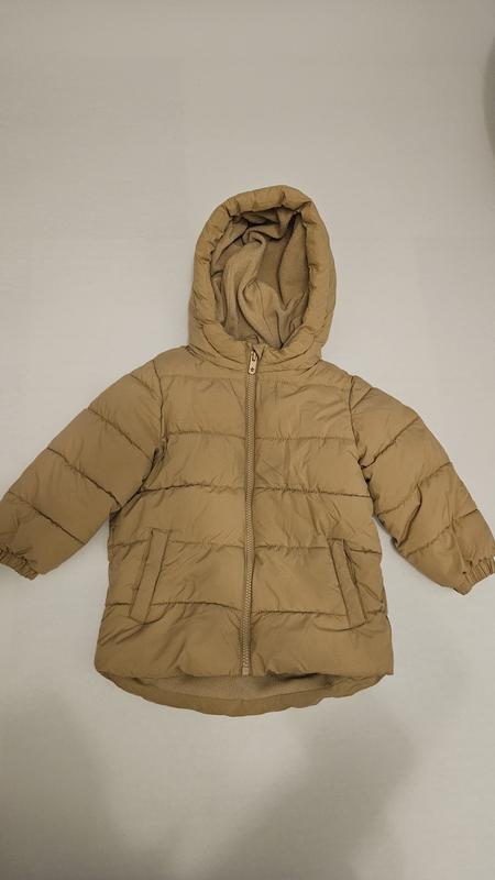 Курточка утеплена для дівчинки 2-3 роки, розмір 98. Довжина переду від плеча до низу 45см. Спина на кілька см довше. Довжина плеча від капюшона 39 см. Груди 36см. Курточка підходить на холодну осінь-весну або на теплу зиму. На замку є потертості. На спині невеличка зачіпочка. Фото дефектів додано.
