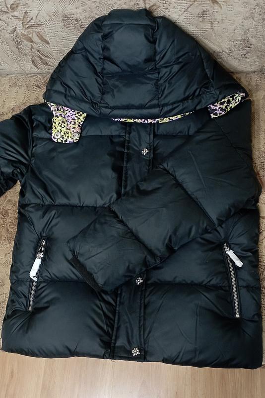Куртка дівчинці нова.Еврозима.Нова з біркою.Хороша якісна фурнітураЗ'ємний капюшон.Бокові кишені на застібці,є внутрішня кишеня.Спинка оздоблена фірмовою блискучою вишивкою.Довжина спинка 55 см,рукав 48,плечі 44