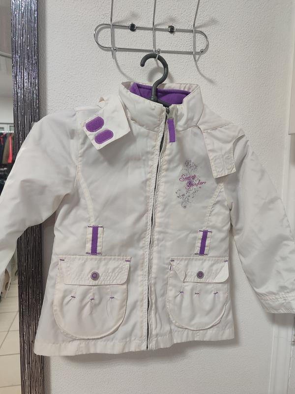 Куртка на дівчинку 110розмір в ідеальному стані🔥 Куртка хорошої якості. Зверху водонепроникна,в середині підкладка з бавовни,підкладка відстібається. Заміри: - довжина -50 см; - напівобхват грудей -39см( під мишками); - рукав-38 см; - спинка-31,5 см.