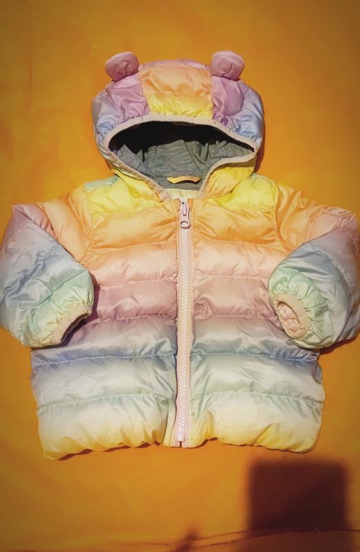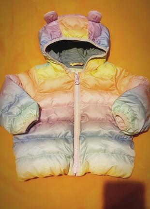 Дитяча куртка різнокольорова, на капішоні вушка, легенька, для маленької дівчинки. В ідеальному стані. До 1/1,5 року..