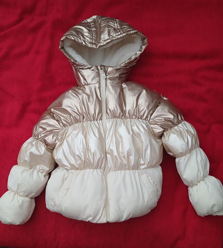 Куртка зимова F&F на 5-6 років на зріст 110- 116 см. Стан новий- вдягалась раз. Дуже тепла та не важка. Наповнювач - штучне хутро та сілікон. Колір темне золото, золото та айворі. Купляли у Італії і . Довжина 37 мм. Ширина 40 см. Плече 15 см. Рукав 37 см