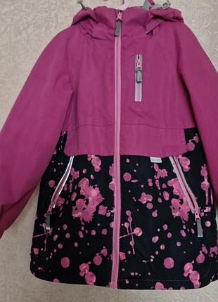 Куртка фірми Joiks. Нам дуже подобається цей український бренд. Якість в них супер. Куртка іде на весну-осінь та єврозима. Температурний діапазон +15 до -5. Розмір 134. Є нюанси: потертості світловідбивачі на кишенях і ззаду на спині, та є невеличка зачипка на рукаві знизу, її не помітно.