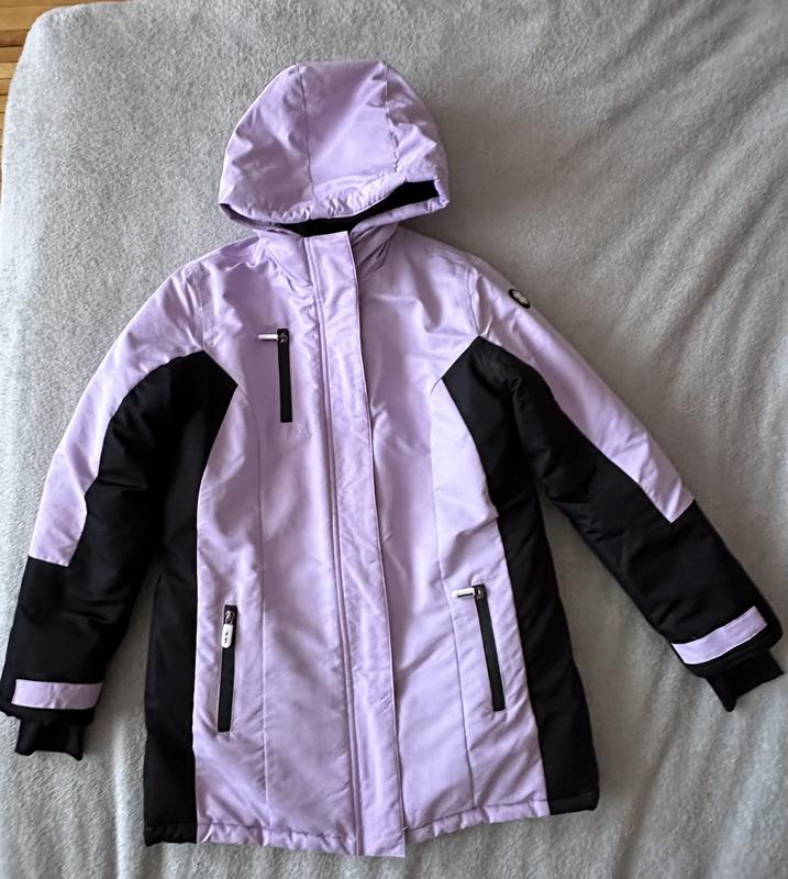 Тепла зимова куртка, не промокає, стан чудовий, має мінімальні сліди носіння. На зріст 146-152см