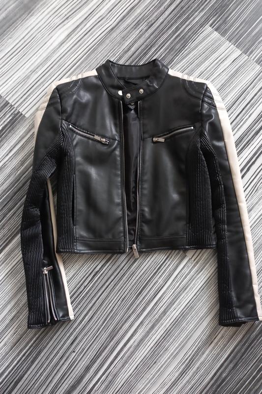 Стан гарний, дефектів не побачила. Розмір S,шкірзамінник,вкорочена на підкладці.Заміри по запиту.