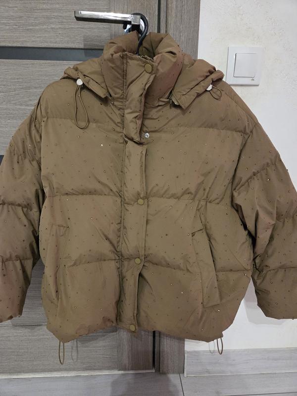 Дитяча зимова куртка для дівчинки, вся покрита в каміння,тепла,зріст 160