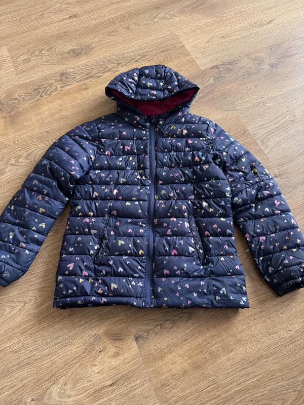 Супер куртка для дівчинки, демісезонна, дуже комфортна і весною і до початку зими, сердечки при пранні не зтираються, була невелика зацепка, на фото велике рожеве сердечко, більше дефектів немає