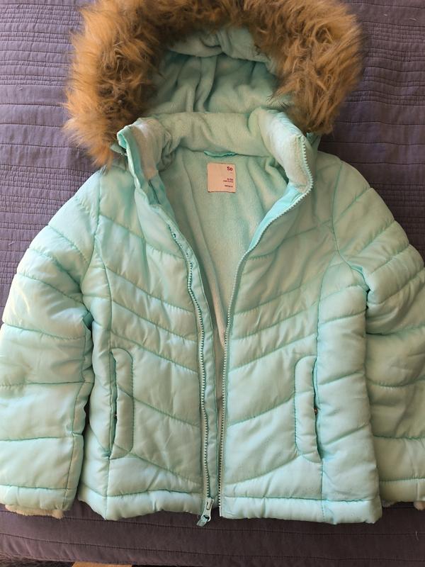 дуже красива тепла фірмова куртка, продаю після зими, бо буде вже мала , в дуже гарному стані, купувалась в США, колір насичиніше, ніж на фото, капюшон гарно закриває, , шийка також закривається добре, тканина в блискучу - перламутрову мілку крапочку. Підклад по спинці в капюшоні, на шийкі і на манжетах - фліс як коротеньке хутро, м'який та теплий, блискавка в ідеальному стані. із недоліків - непомітні плямочки на рукавчиках, я не пробувала відпрасувати бо навіть не побачила, та флісові манжетики на краю трохи втратили колір. на фото все показала. хутро на капюшоні гарне, відстьобується. ми носили на зріст 128-134, орієнтуйтеся на заміри. заміри - Напівобхват груди 39-40см, від плечика до низу - 49см, рукав без манжети 49.5, від плечика до плечика -33