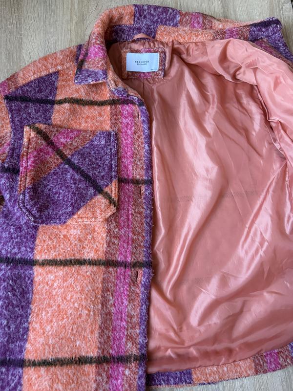 Дуже стильна , тепла куртка рубашка відомого бренду Reserved ,134-140. Яскрава, зручна, до будь якого одягу. Стильні кишені, розрізи по бокам. Довжина-56, ширина-47, рукав від шиі-56. Стан супер.