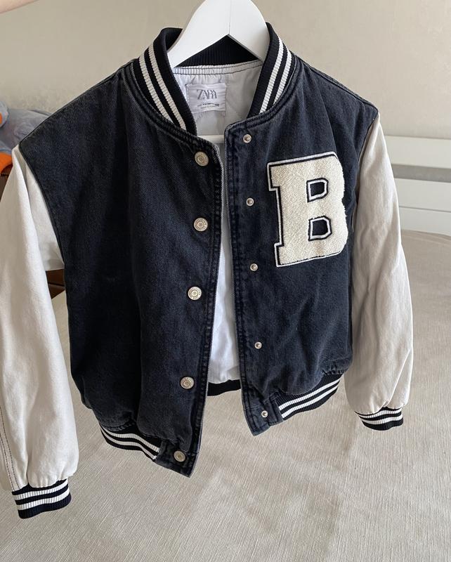 Стильний джинсовий бомбер, трішки утеплений. На одному рукавичку якщо придивитись на стику шва джинс трошки потерся. В іншому стан супер.