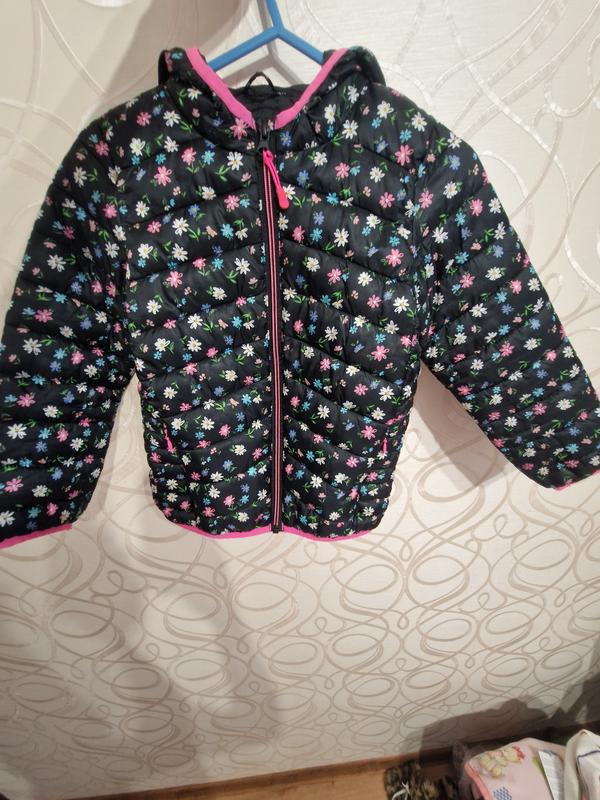 Куртка M&S, злегка утеплена, є кишені на змійці та капюшон, водовідштовхуюча. Рукав від плеча - 43 см, довжина- 49 см, ПОГ- 38 см. На вік 5- 6 років.