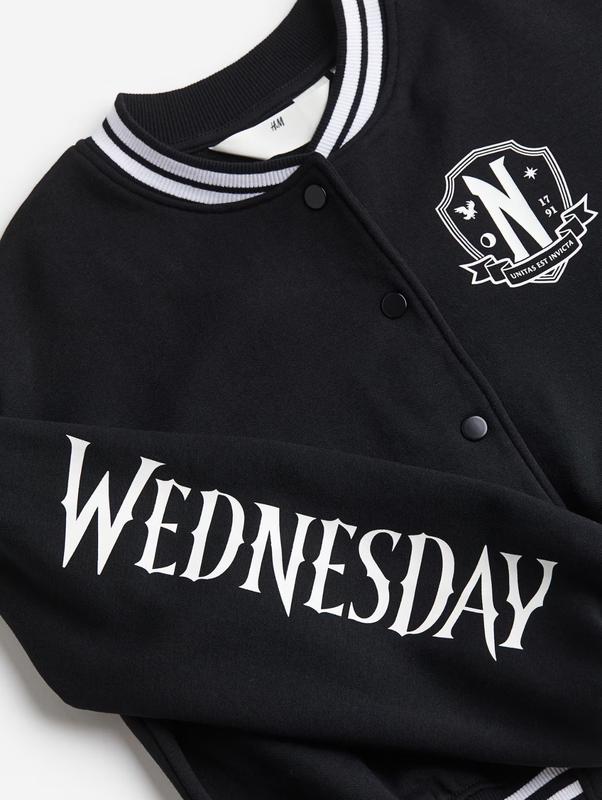 Объемная однотонная бейсбольная куртка из хлопковой ткани с принтом и мягкой ворсистой внутренней стороной. Небольшой ребристый воротник, кнопки спереди, приспущенные плечи, длинные рукава и ребристая отделка на манжетах и подоле. 12-14 лет/ 158-164 Длина 48. Пог 55. ПОТ 36. Рукав от шеи 74