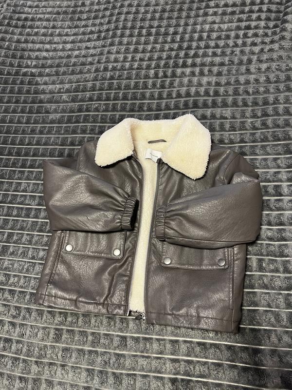 Стильна косуха для дівчинки 🤍 Куртка з якісного кожзаму холодного сірого кольору — виглядає дуже трендово та дорого. Розмір 122–128, але спокійно носили і на 134. ▫️ Молочний м’який мех по спинці та на вороті — тепла і комфортна ▫️ На рукавах меху немає — зручно та практично ▫️ Затягується внизу на резинках — гарно сідає по фігурі ▫️ Рукавчики також на резинках — не задуває Куртка дуже гарна вживу, приємна до тіла і легко комбінується з будь-яким одягом ✨ І найприємніше — дуже вигідна ціна