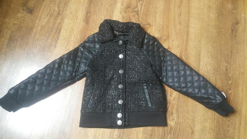 Модная осенне-весеенняя курточка для девочки от TM Jessica Simpson. Манжеты и низ на резинках. Возраст 4-5 лет. Размер: длина - 38 см, ог - 28*2 см, длина рукава от воротника - 46 см, внутр. длина рукава - 30 см, ширина внизу - 30 см.
