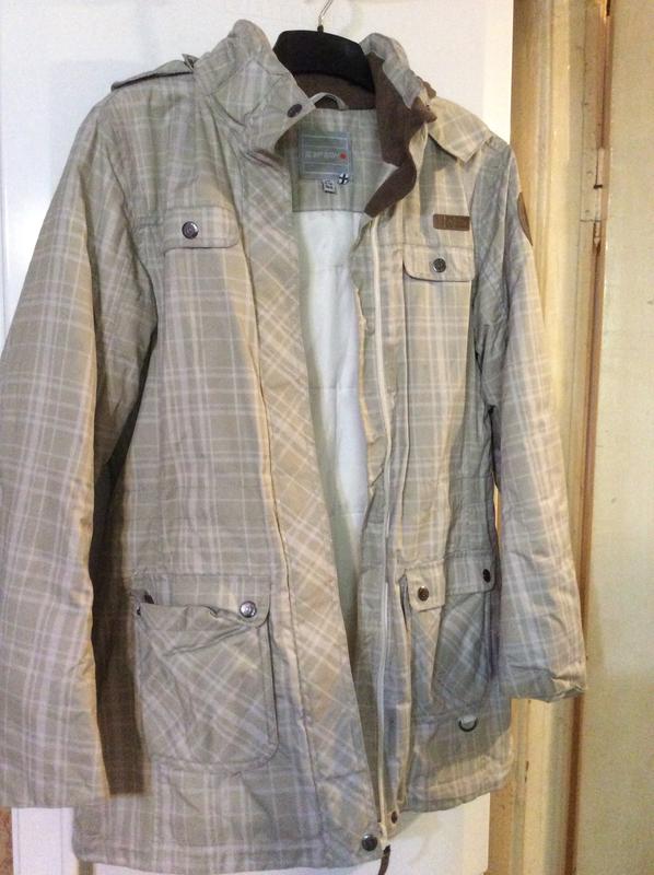 Демісезонна куртка, колір -непомітна клітка, бежевий з світло-салатовим. Продавалася як підліткова, але чудово підійде дівчині невисокого зросту
