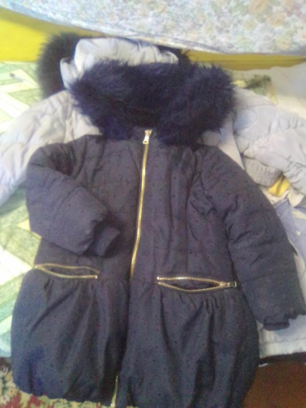 курточка темно синя, фото колір не передало. довжина рукава 40 см, загальна довжина 58 див. на ріст 110-116 див. Оплата на карту, відправка укр або новою поштою