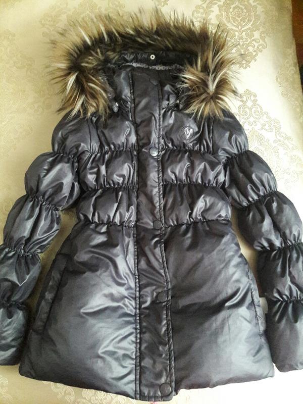Куртка відомого бренду .Еврозима, підійде на осінь і весну. стан ідеальний. Колір темний, бузковий. Капишен відстібається. І хутро теж. Наповнювач - пух. Довжина - 57см. рукав-52см,пог-39див.Спина-34см. Дуже легка і зручна.
