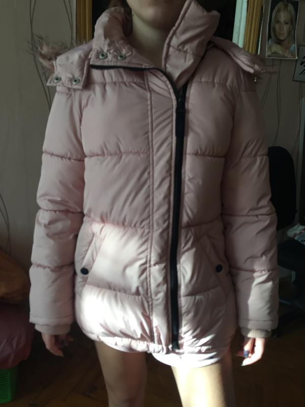 Дуже тепла зимова курточка, легка. Відмінна в шкарпетці. Розмір на 13-14 років. Капюшон стильний, відстібається. Невеликі катишки на рукавах. І темні розводи по внутрішньому низу курточки від синіх джинсів. При хімчистці отстираются. А так в ідеальному стані