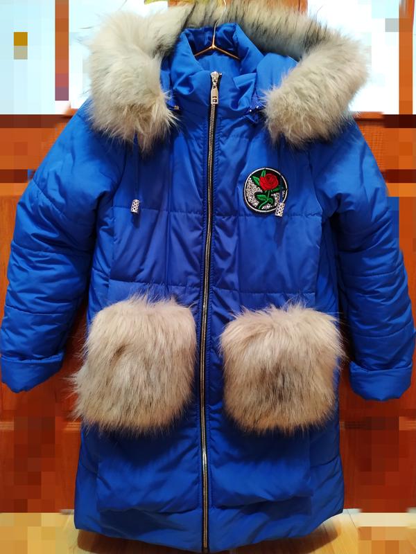 Модняча ,якісна зимова курточка сучасного фасону в ідеальному стані,капішон і пушок з кишень знімається.Рукавчик регулюється можна закотити або опустити.Купляли за 1200 грн.,віддам за 500грн.Є ще шапка з хомутом до неї.Приблизно на вік 9-12років.Довжина по спинці 83см.