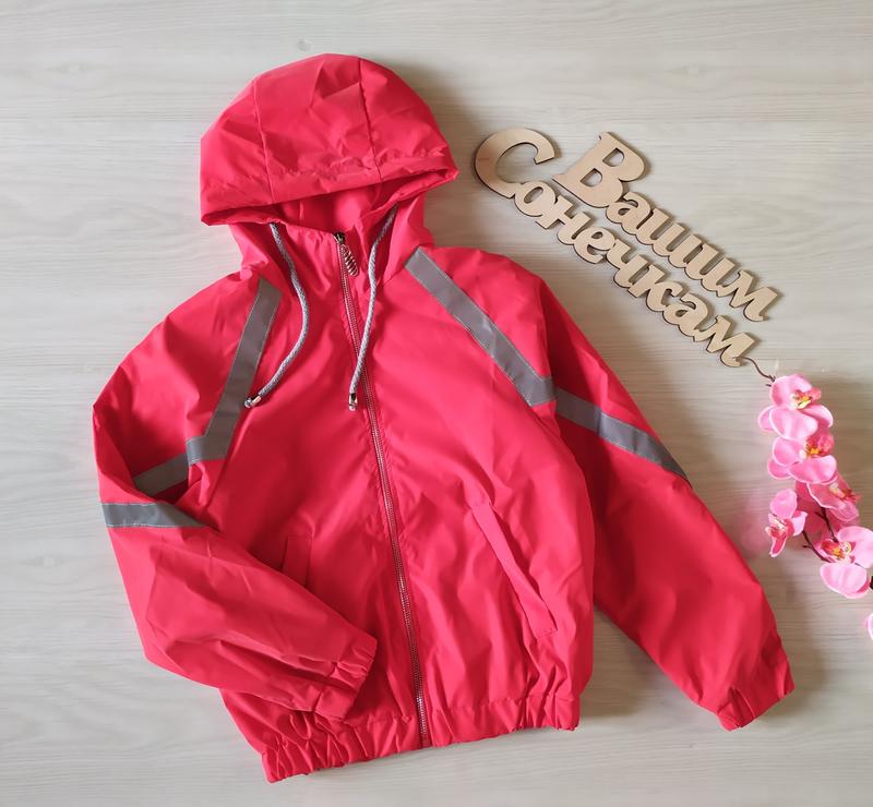 525 грн Модна вітрівка зі світловідбиваючими лєнтами має підкладку верх водонепроникана плащовка оксамит - тканина на рукавах і по низу гумка вільного стилю колір червоний просто бомбезна 140-1шт 146-1шт 152-1шт 158-1шт заміри 140: довжина 53см, рукав від шиї 62cm, пог 45см 146: довжина 55см, рукав від шиї 64.5 см, пог 45см 152: довжина 58см, рукав від шиї 67см, пог 47см 158: довжина 60см, рукав від шиї 70см, пог 48см