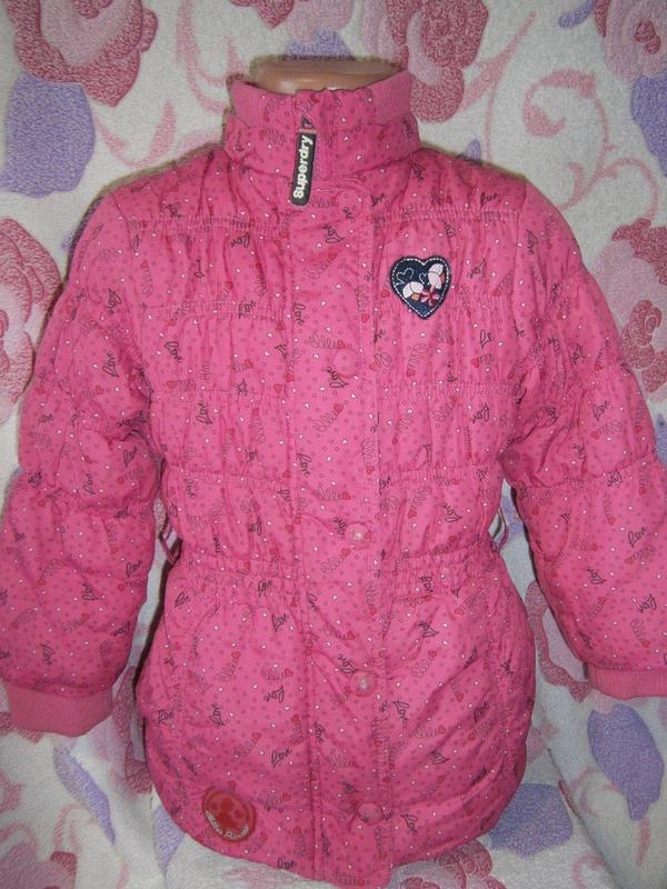 куртка сезон демі, стан відмінний, на ріст 104 см,( реально більше), плечі - 32 см, рукав з манжетом - 38 см, ПОГ - 40 см, довжина - 51 см , по грудях і рукавах є гумки