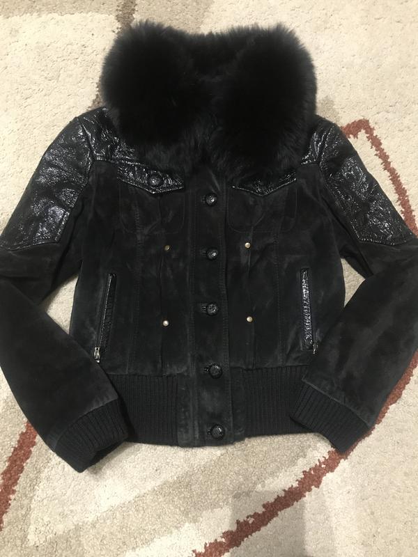 Натуральна замша,лак вставки-шкіра,натурал фронтальну хутро-комір;синтепон,до -5•,Без дефектів.