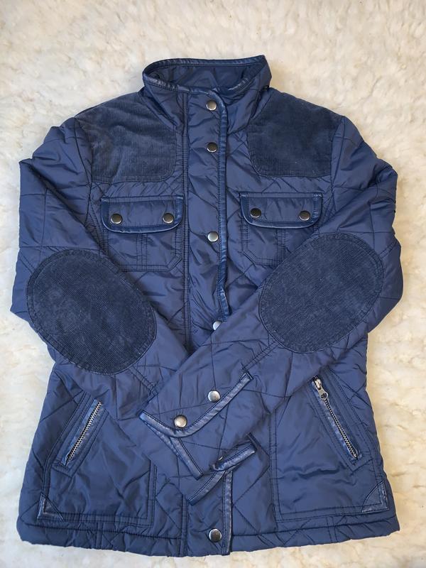 Розмір 8 Стан ідеальний Синього кольору Плечі вельвет Оздоблення Стьобана шкіра На легкому синтепоні Застібається на блискавці і кнопках Є 2 зовнішніх кишені і 2 кишені на блискавці Рукав на кнопках Легка , м'яка , приталені Виміри зняті за назовні ! Заміри : Плечі - 39 см, Рукав - 60 см ПОГ - 44 см ПОТ - 42 см Низ ПО -46 см Довжина -60 см