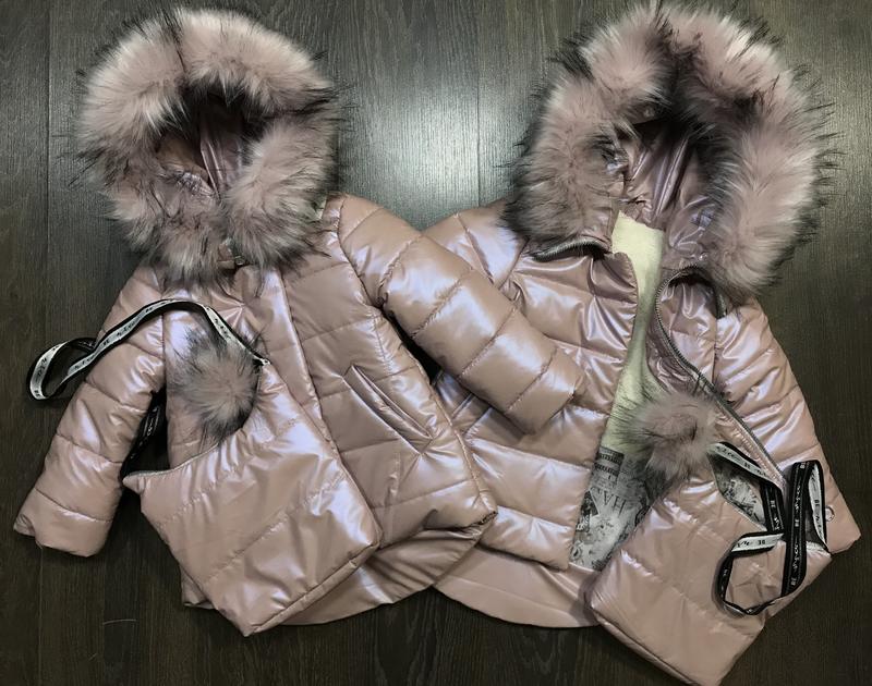 Красивая курточка с сумочкой! -Верх курточки - Монклер-переливайка -Наполнитель силиконизированый синтапон 300, подкладка - травка -Качественная и дорогая фурнитура. -Застегивается на молнию, планка на липучке -На капюшоне очень дорогой искуственный мех как "натуральный" -Капюшон не отстибается, а мех - отстегной -Рукав можно подвернуть на 5см. -В рукавах есть защита от попадания снега. -В курточке есть два функциональных кармана Размеры в наличии: 104см 3шт 110см 2шт 116см 2шт 122см 1шт Замеры!!! 104см. рукав от плеча - 37см. длина спереди - 45см. ширина - 32см. 110см. рукав от плеча - 40см. длина спереди - 47см. ширина - 33см. 116см. рукав от плеча - 42см. длина спереди - 51см. ширина - 36см. 122см. рукав от плеча - 44см. длина спереди - 52см. ширина - 38см.