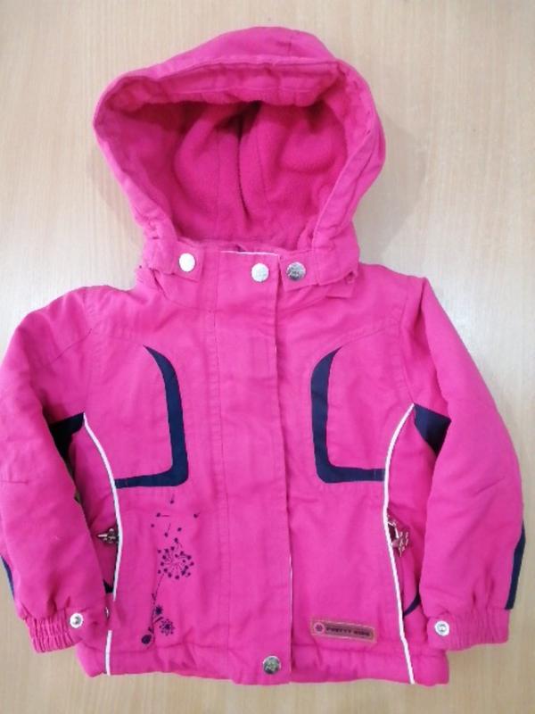 Демисезонная. На тонком синтапоне, на флизе, длина 37см, пог 34см, длина рукава 33см, плечо 7см, капюшон отстегивается.