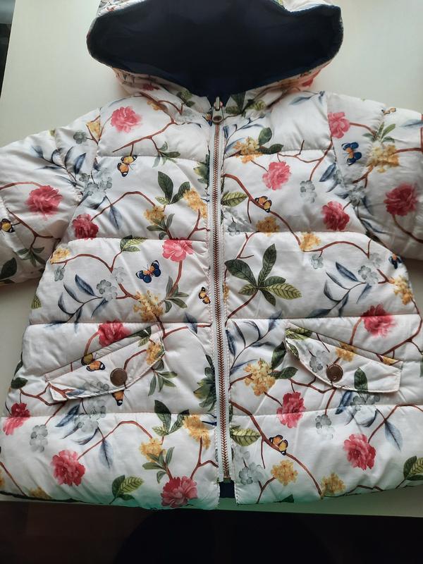 Тепла курточка двостороння, дуже красиво виглядає. Наповнення синтепон. Підійде на дівчинку 2-4 рочки. Довжина 38см, рукав 31, ПГ ширина 34-35.
