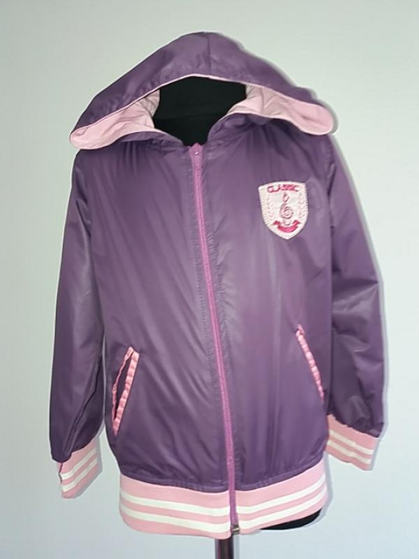 вітровка для дівчинки фіолетова на підкладці (коттон) на 3 роки довжина 35 см, рукав-32 см п/обхват 30 см на 5 років довжина 41 см, рукав-37 см п/обхват34 см на 6 років довжина 44 см, рукав-39 см п/обхват 36 см