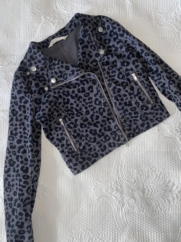 Коротка Курточка «косуха принт» круто виглядає відомої фірми H&M 152 розмір! Можна носити влітку, а можна в школу взимку під футболку. ( довжина рукава 53 , дл.по спинці 35 див.)