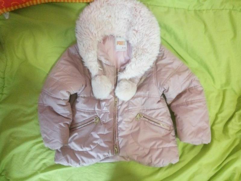 Демісезонна куртка для дівчинки, гарний блідо рожевий колір, хутро відстібається, плюс щось типу шарфика з помпонами, на 3-4 роки, заміри: довжина 45, рукав 39, плечі 34, пахви 40-41 на рукавах сліди шкарпетки, на жаль зараз пральна машина не працює, немає можливості випрати