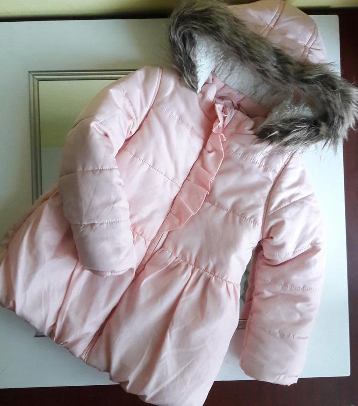 Куриочка подовжена на дівчинку 2-3 і довше.Стан хороший.Холодна осінь - тепла зима.На останьому фото - нюанс( точки на підкладці) Ззовні без недоліків.