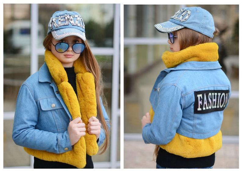 №2024 стильна Джинсова курточка трансформер Курточка складається з двох виробів Перша - джинсова, з натурального вареного джинса , пришивная емблема з голограмного написом , застібається на кнопки Вторячи - стьобана плащівка (на силіконі 100) + ВИСОКОЇ ЯКОСТІ ХУТРО КРОЛИКА Колір - блакитний джинс + рожевий, гірчичний, бузковий Розміри oversize !!! один розмір на два зростання -134-140 , 146-152