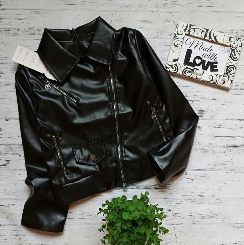 Шикарная новинка! Косуха из эко-кожи на подкладке Карманы на молнии Цвет черный Замеры Длина/ рукав/ ПОГ р.128-134 43см/ 50см/ 36см р.140 45см/ 52см/ 39см р.146 47см/ 53см/ 40см р.152 49см/ 54см/ 42см