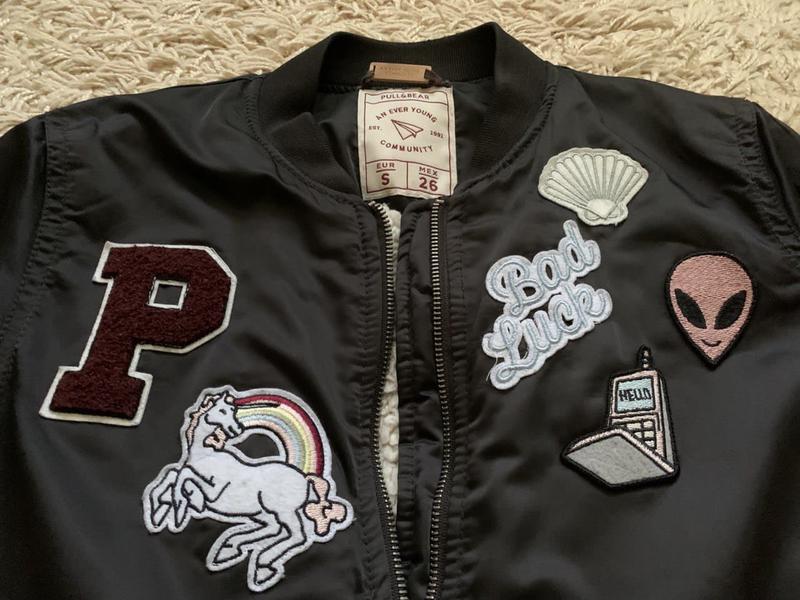 Курточка бомбер з нашивками, всередині на хутрі. Стан ідеальний, жодних дефектів.
