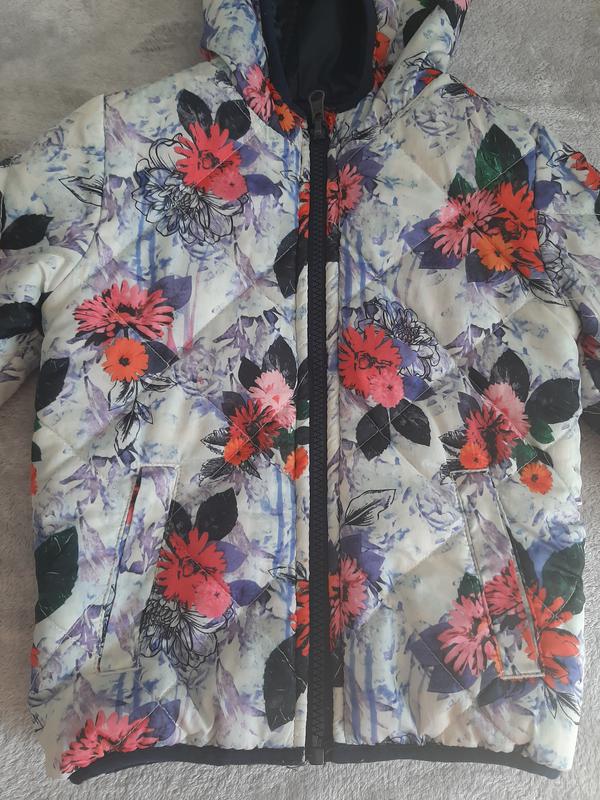 Дуже красива і яскрава двостороння курточка. Друга сторона темно-синя. Стан дуже хороша. Куртка дуже тепла і легка. Дуже зручна в шкарпетці. Капюшон дуже щільно поилегает до голівці.
