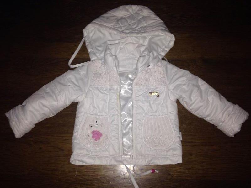 Курточка для дівчинки практично нова із в"язаними вставками,дуже гарна,б/в 2-3 рази(стала замала).Розмір 74 див. Польського виробництва,купляла набагато дорожче.