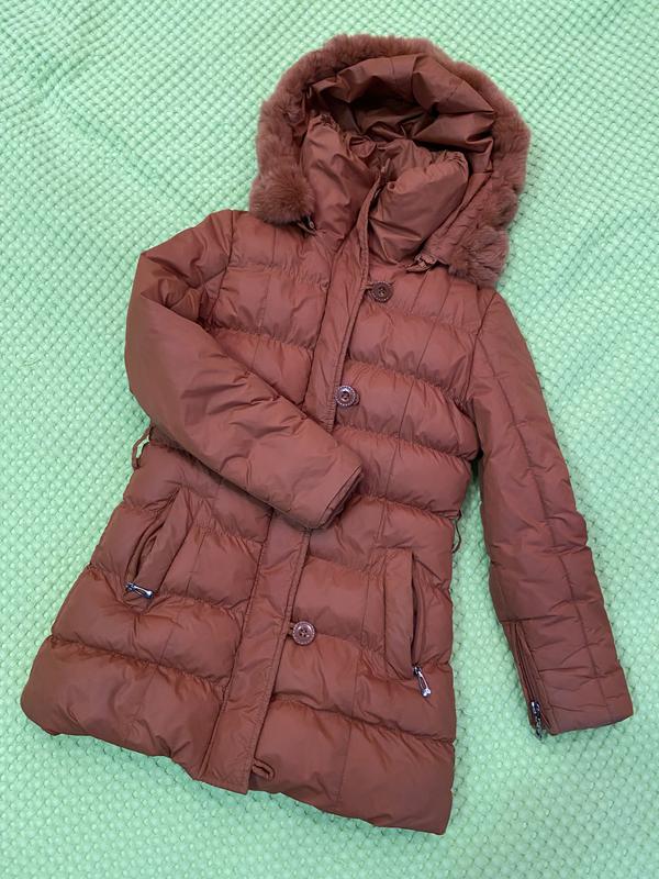 Куртка/Пуховик коричневого кольору з капюшоном, є незначні дефекти! Заміри: Довжина- 69см; Довжина рукава-52 см; Пів обхват грудей -43см; Ширина по плечах - 38см; Ширина в низу- 52см. Можлива відправка. За необхідності скину додаткові фото!