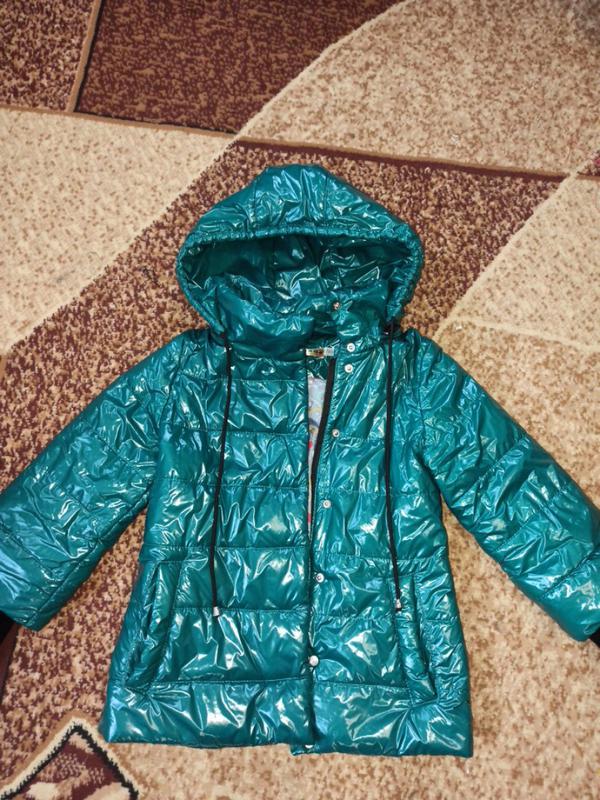 Осіння курточка для дівчинки. ПОГ 40-41СМ, довжина по спинці 52см, довжина рукава 48см, чохли знімні. Тканина - блискуча плащівка. Класно виглядає на дівчинку