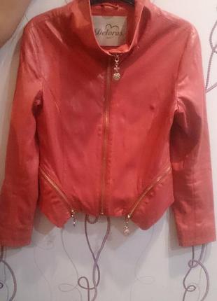 Супер курточка на маленьку модницю!якісний кожзам, колір кораловий, на зріст до 150,в ідеальному стані