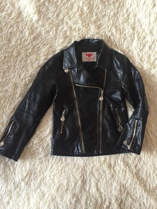 В ідеальному стані. р. 110 Загальна довжина -44см, спина - 28 см від шва до шва, ширина загальна - 33,34 см, рукав від шва плеча-43,5 див. Кожзам без будь-яких ушкоджень.
