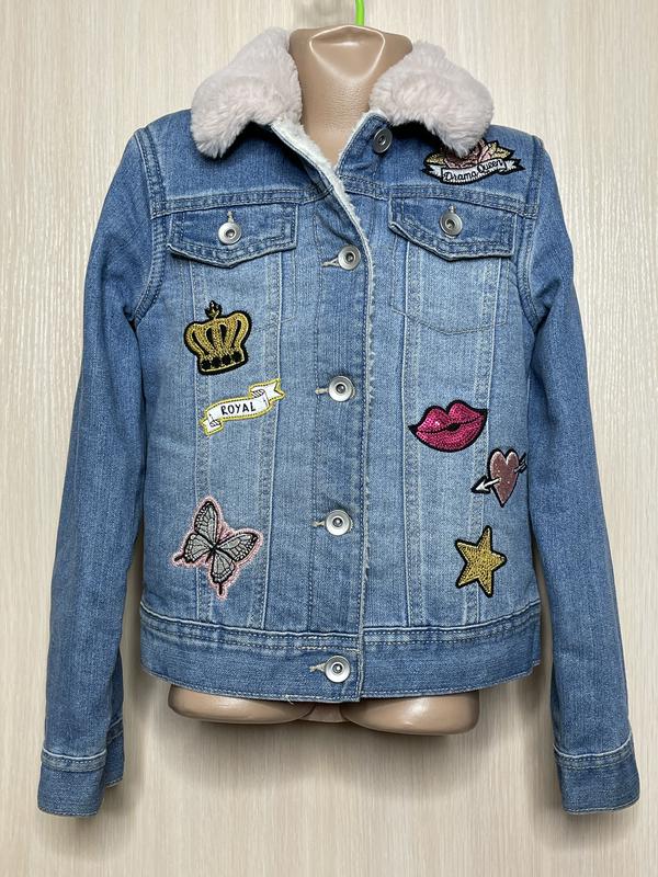 Джинсова шерпа, утеплені хутром. Рукава без утеплювача. Хутряний комір не знімний. Стан ідеал, без дефектів 7-8 років Довжина 44. ПОГ 37. Рукав 48