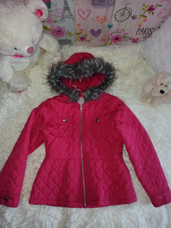 Дуже симпатична курточка. Утеплена флісом. Вся фурнітура робоча. Дефектів немає. Пришитий Капюшон. Довжина 51 Рукав 47 Ширина 39,34,47 (груди, талія, низ) Плечі 34 Капюшон 25на 25